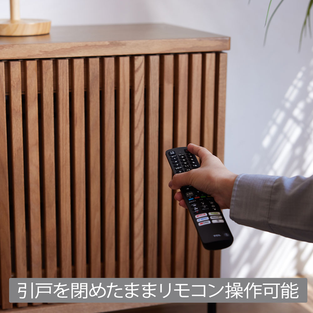 引き戸の格子部分はリモコン操作が可能で、扉を閉めたままAV機器の操作が可能です。格子裏はガラスになっているので埃も入らないようになっています。