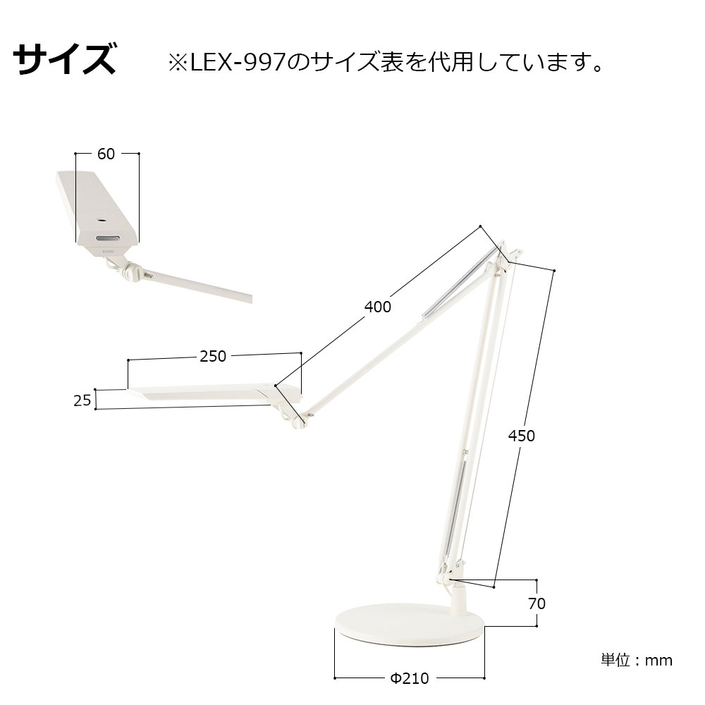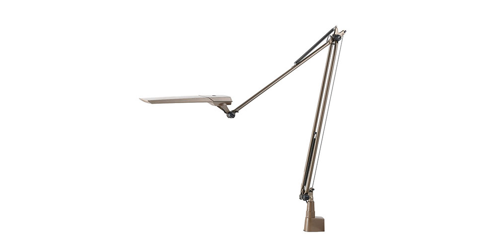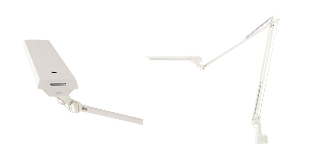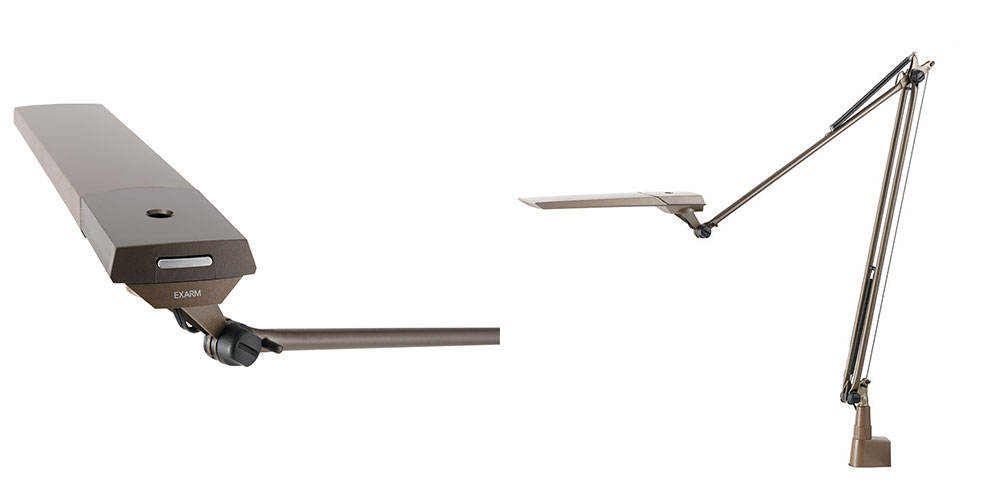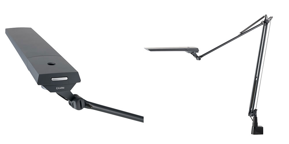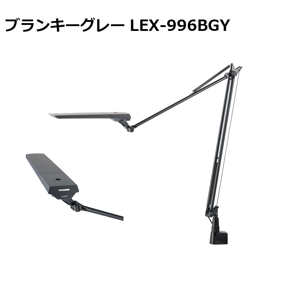 デスクライトブランド「EXARM」。「LEX-996」はEXARMのフラッグシップモデルです。すべての部品が日本製からなる、繊細なラインが美しいデスクスタンドです。軽やかで滑らかなアームライトは、角度が自由自在に調整可能。自分の欲しい位置でピタッと止めることが出来ます。高演色のバイオレッドLEDを採用し、Ra97の限りなく自然光に近い光を再現しました。