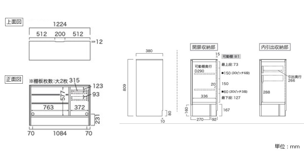 幅1224x奥行380x高さ809