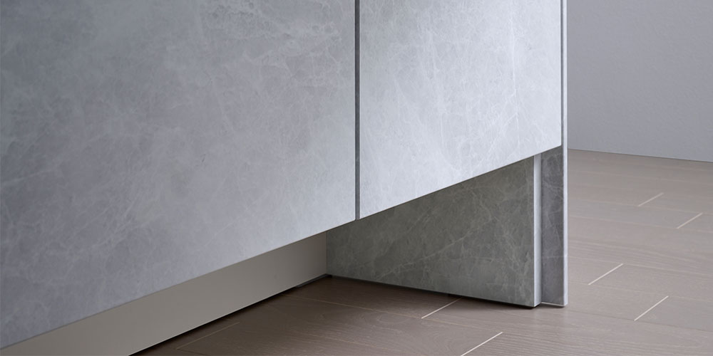台輪が奥まっているので、浮いているような軽快なデザインです。床面積を広く見せ、圧迫感を和らげます。