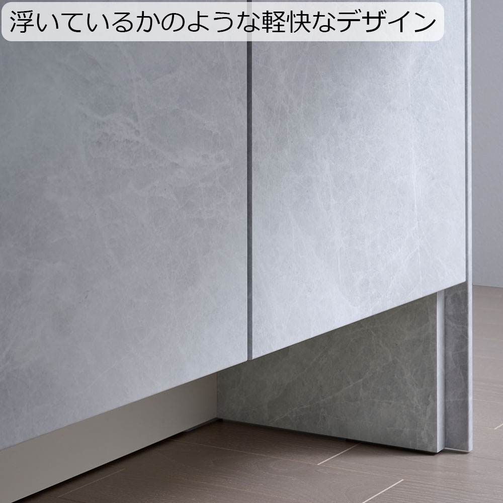 スリムなパネルで囲った洗練されたモダンデザインが特長のサイドボードです。天板、側板が細いラインに見えるような設計。高級感のある石目柄と、ハイマットな単色でモダンなデザインに仕上げました。