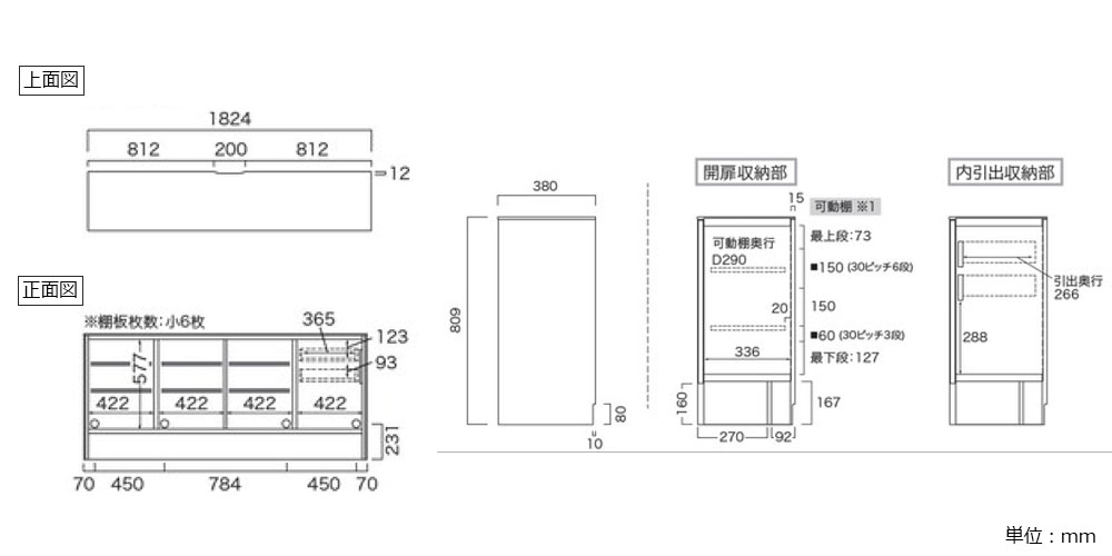 背面は配線のことも考えた設計。巾木カットと天板カキトリが設けられていることで壁にぴったりと設置できます。※画像はLI-150Cのイメージです。