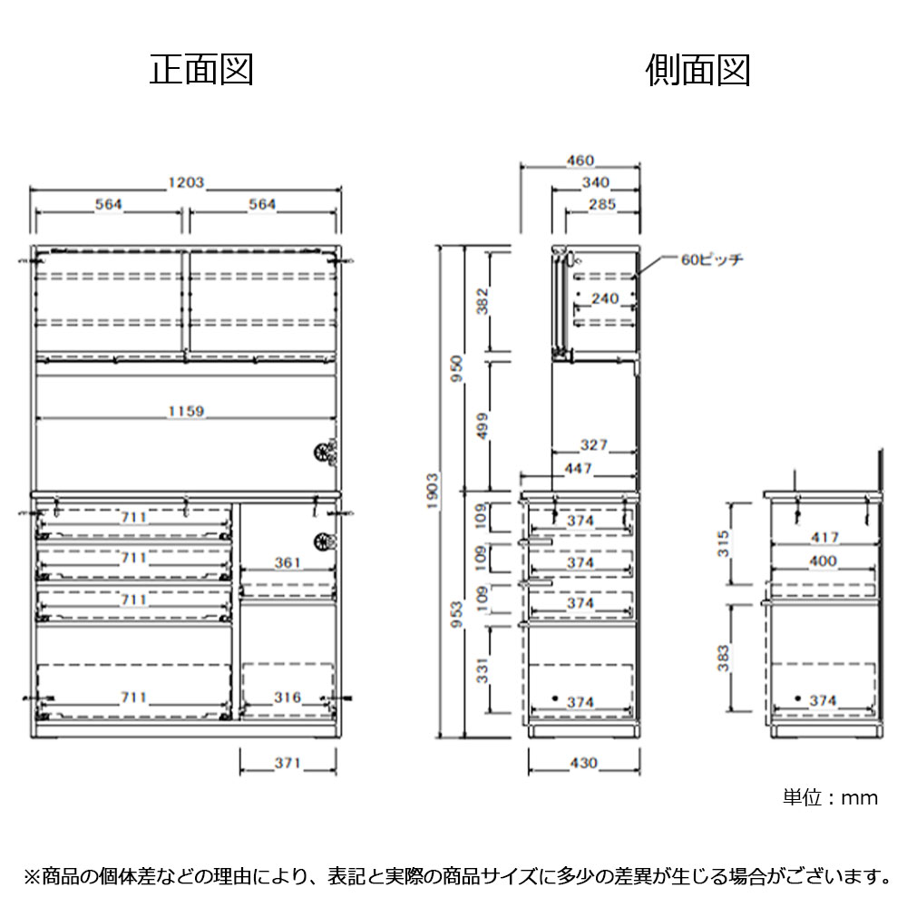同シリーズの幅60cmのダイニングボードと組合わせれば、収納力アップが叶います。
