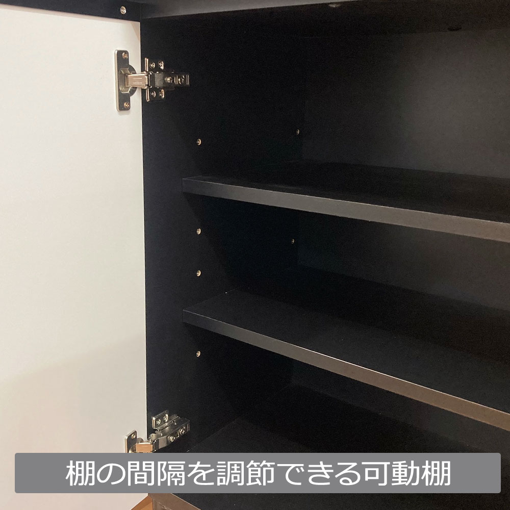 開き扉には安全でゆっくり閉まるダンパー丁番を使用し、静かに開閉します。内部は可動棚2枚付きでたっぷり収納できます。