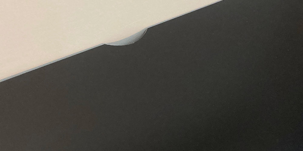 天板奥には配線に便利なコード通しのスリットがついています。天板は耐熱170度、硬度8Hある国産のメラミン材を使用しています。