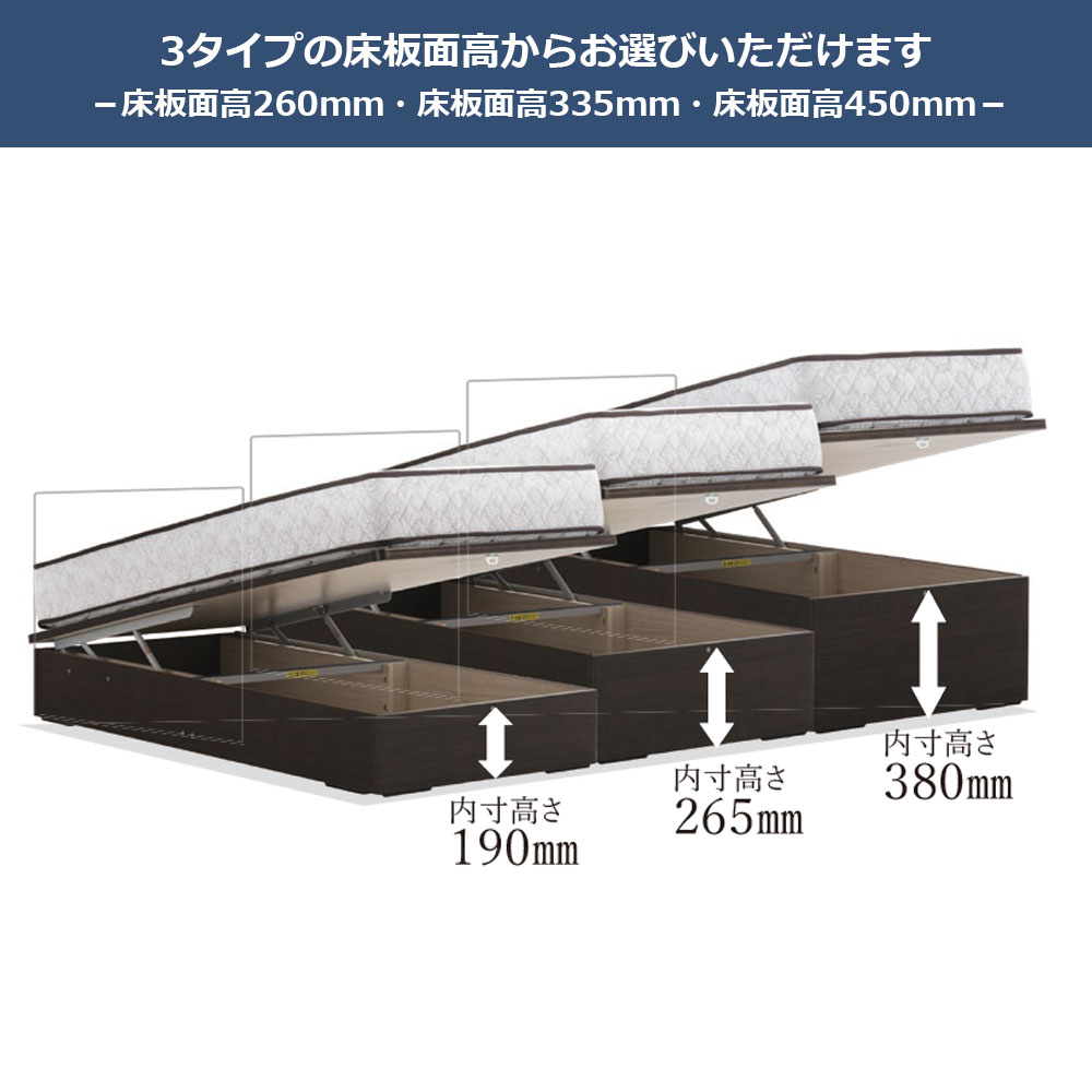 ベッドフレーム「フルボC BODX」縦型収納(跳ね上げ式)タイプ 床板面高全3タイプ 全3色(*要マットレス重量確認)