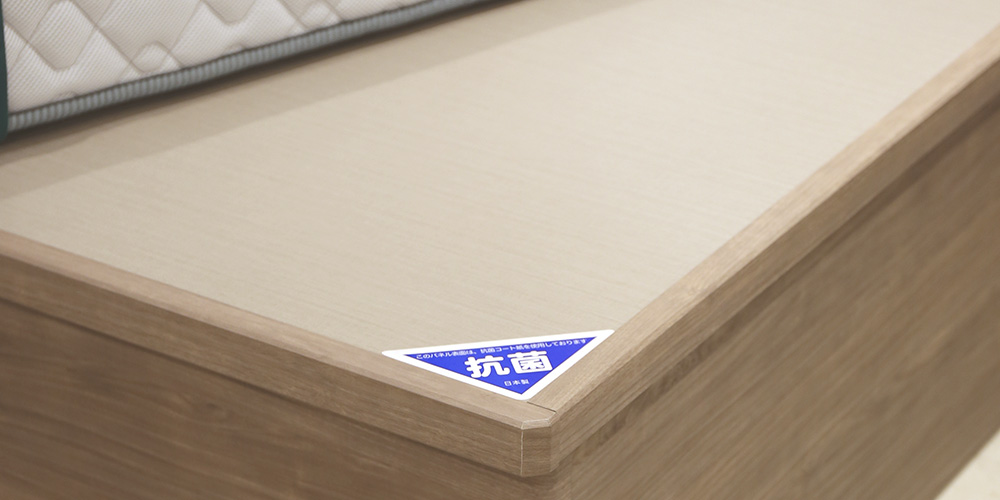 床板は、表面素材を2倍に強化したDXパネル仕様です。布団やノンスプリングタイプのマットレスを載せて使用いただけます。抗菌コート加工で衛生面も安心です。