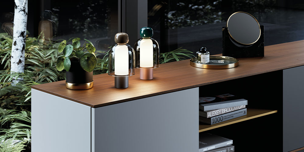 イタリアの照明ブランドLODES社の「easy peasy 」は、上質な艶ガラスとイタリアならではの洗練された美しいカラーリングが目を惹くテーブルスタンドです。充電式なのでコードレスになり持ち運びが可能です。