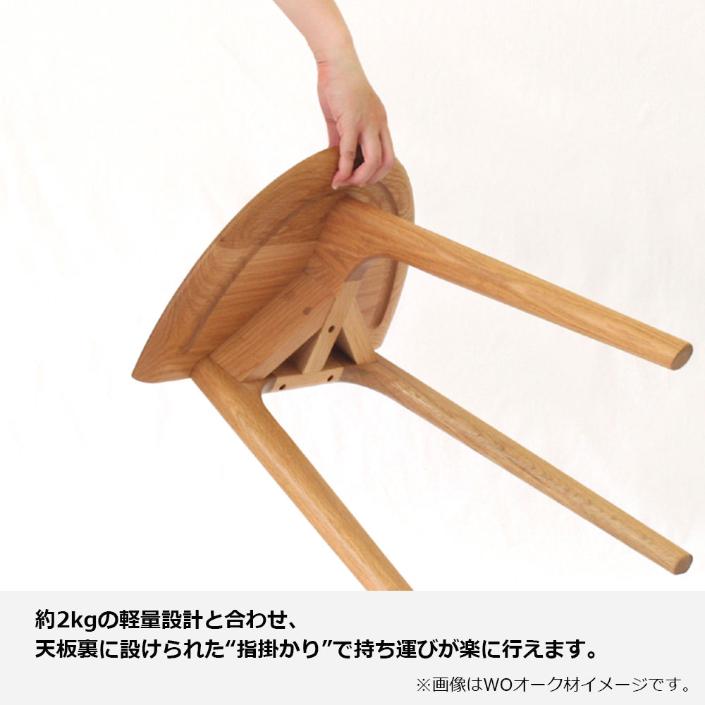 約2kgの軽量設計と合わせ、天板裏に設けられた“指掛かり”で持ち運びが楽に行えます。※画像はWOオーク材を使用したイメージです。