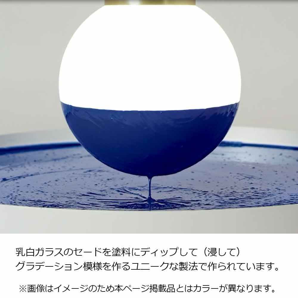 乳白ガラスのセードを塗料にディップして(浸して)グラデーション模様を作るユニークな製法で作られています。着色は職人によるハンドメイドで丁寧に仕上げられています。※ライン幅の間隔、濃淡は1点ずつ異なります。