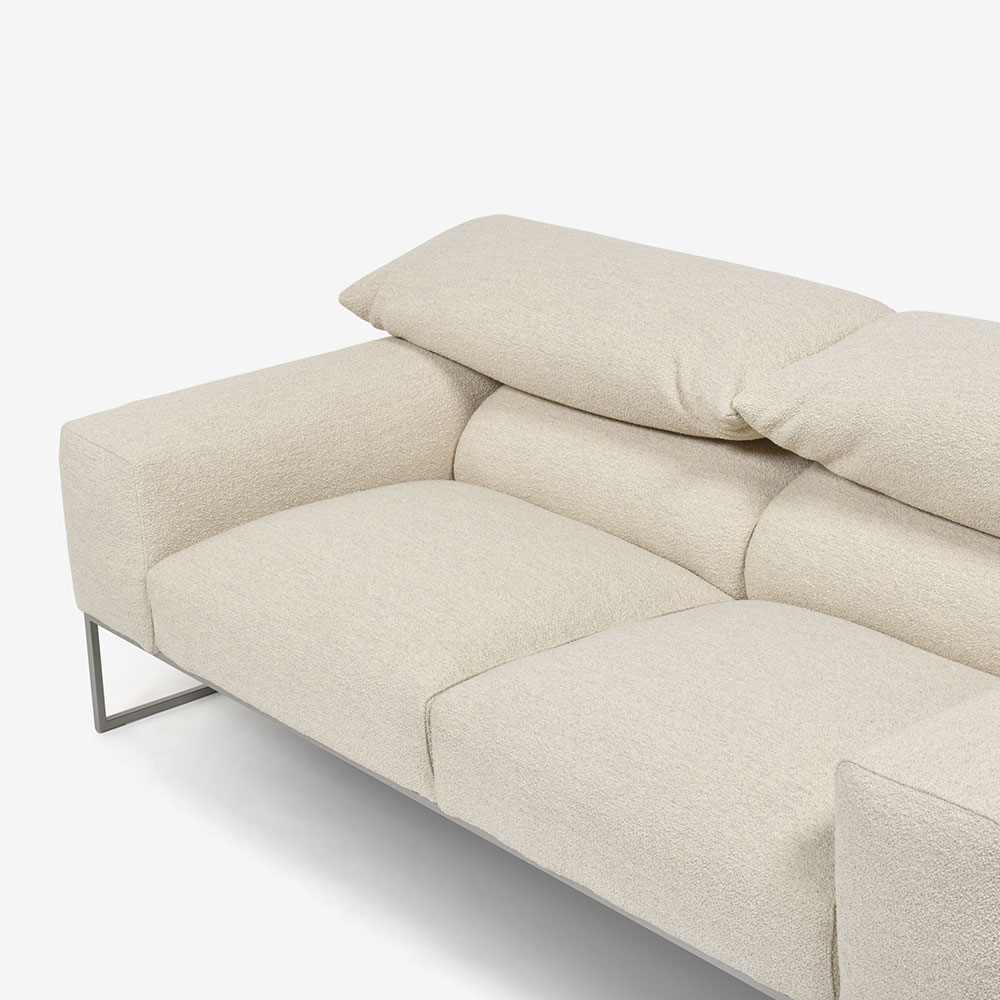 特徴的な丸みのあるデザインの背もたれを伸ばすことでハイバックにできる機能的なソファです。 座面には高密度ウレタンとフェザーを使用し、身体にやさしくフィットする座り心地です。家具工場が母体のブランドだからこそ、充実した自社設備を用いた高品質な構造が魅力です。