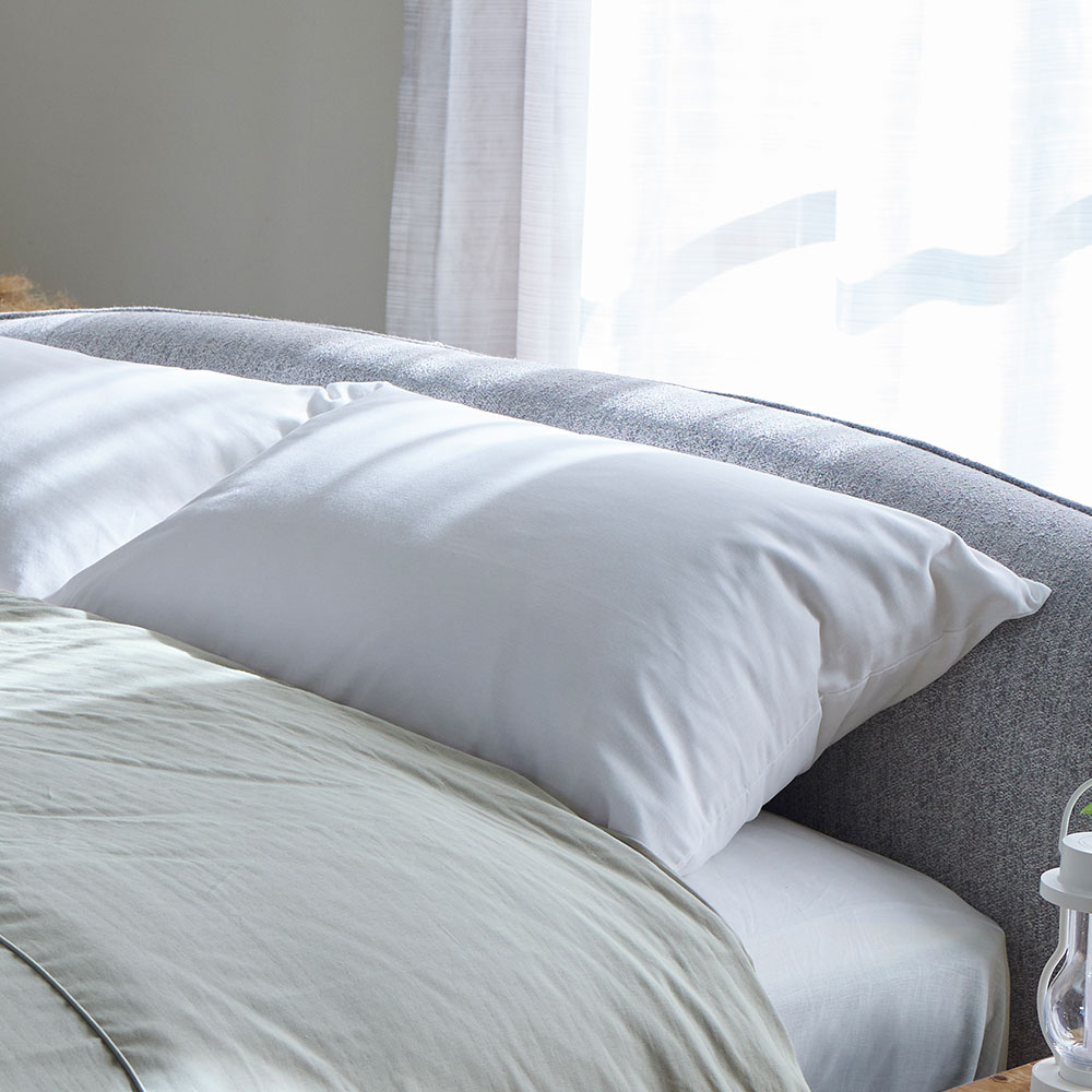 綿100%サテン織りタイプの「エマ」シリーズとデザインや配色(ホワイト・ライトグレー)を合わせているため、ボックスシーツを「エマ」シリーズ内の同色で合わたり、季節やお好みでカラーを選んでコーディネートが楽しめます。