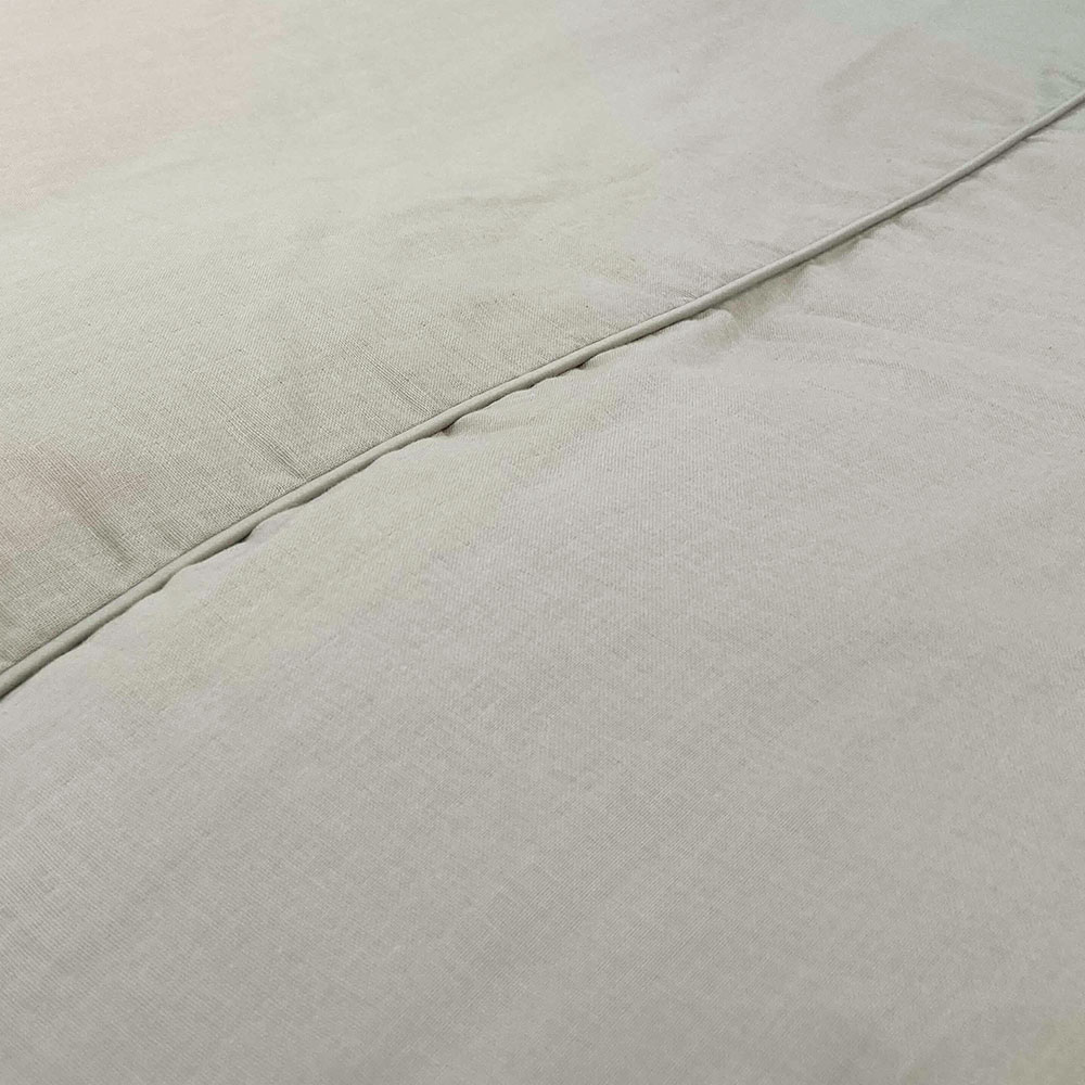 ※画像は光沢感のあるサテン織り「エマ」シリーズの掛け布団カバー(カーキ)、まくらカバー(カーキ・ホワイト)、ボックスシーツ(ライトグレー)を使用したイメージです。本ページ掲載のガーゼ生地とは異なります。