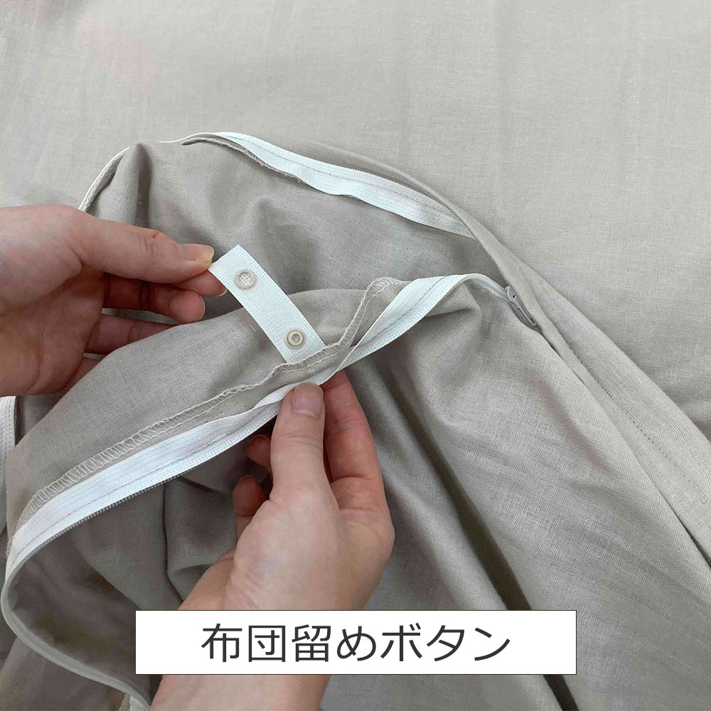 掛け布団が偏るのを防ぐ布団留めが8本ついています。