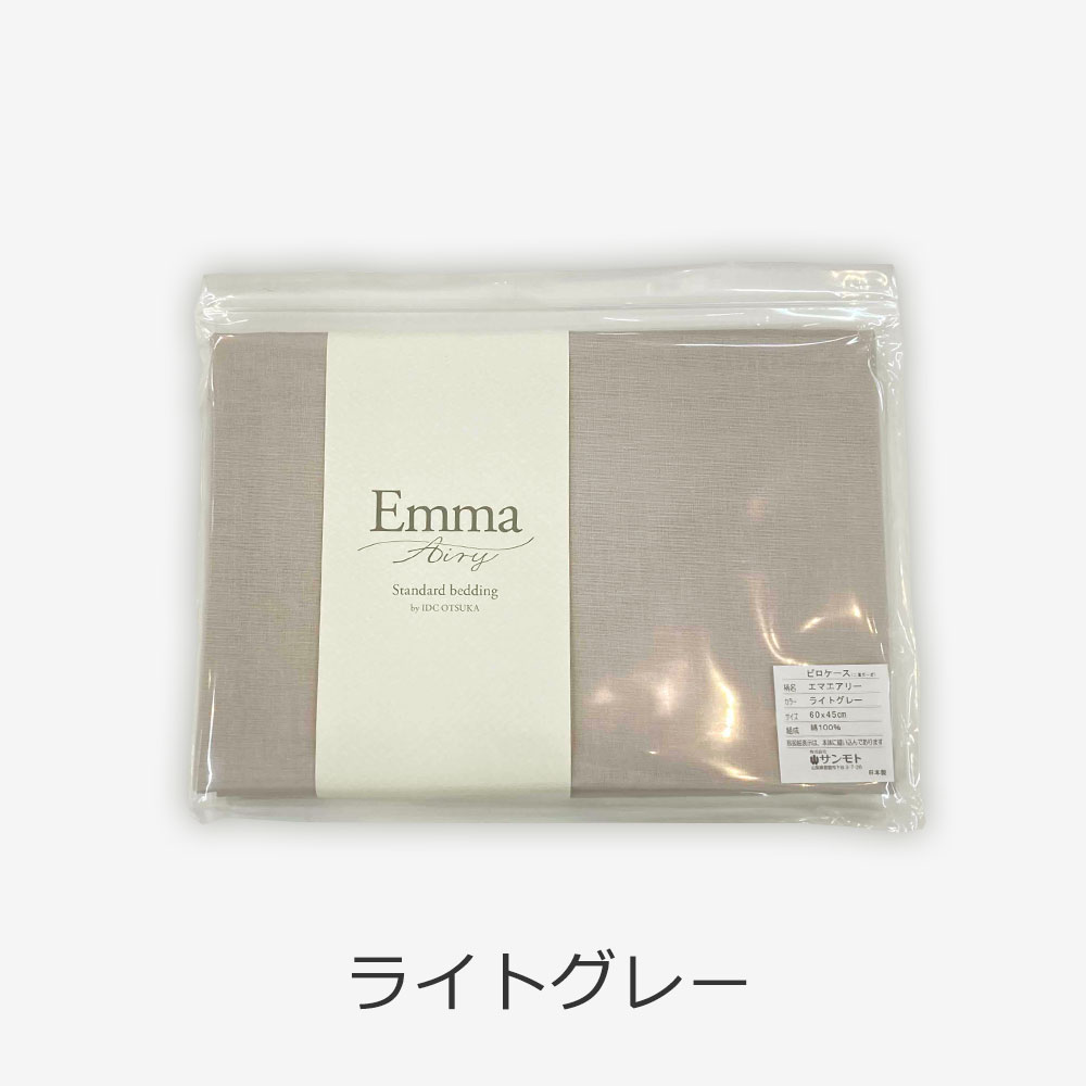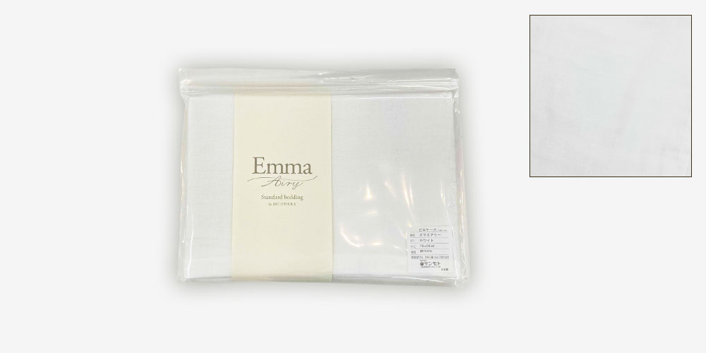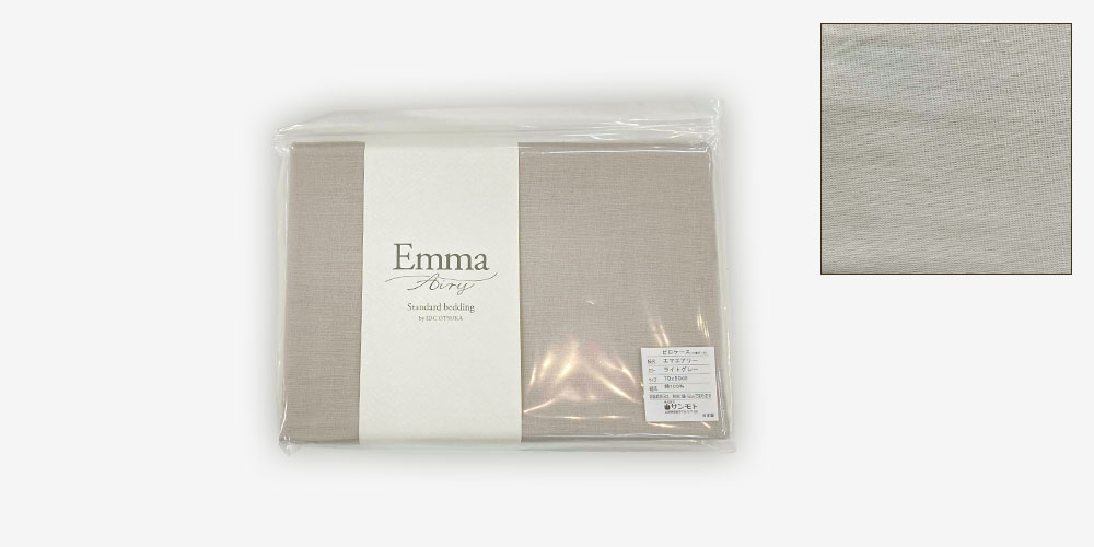 綿100%サテン織りタイプの「エマ」シリーズとデザインや配色(ホワイト・ライトグレー)を合わせているため、ボックスシーツを「エマ」シリーズ内の同色で合わたり、季節やお好みでカラーを選んでコーディネートが楽しめます。
