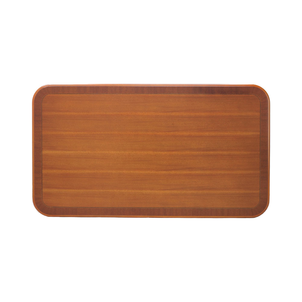 天板表面はマホガニー材柾目の突板とサペリ材柾目の突板を活かした模様貼りを施してます。