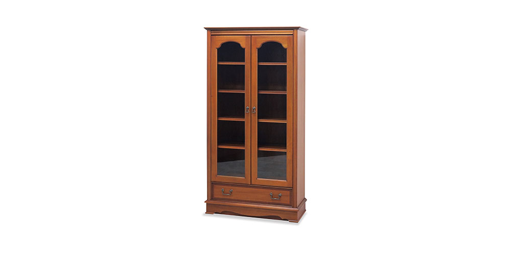 優しい木肌のマホガニー材を活かしたシックで高級感のあるリビングアイテム。引出し前板表面にマホガニー材柾目の突板にサペリ材柾目の突板で模様貼りを施し、ミディアムブラウンの明るく上品な色合いとフォルムが魅力のクラシカルデザインです。扉内には 固定棚板が1枚と可動棚が3枚付いて、収納物に合わせて高さ調節が可能です。