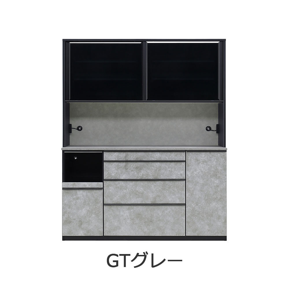 ブラックを基調とした本体に、キズや汚れに強く、美しい艶感が印象的なハイグロスシートを前板に使用したスタイリッシュな食器棚シリーズです。GTシリーズのダイニングテーブルやサイドボードと、統一感のあるトータルコーディネートもおすすめです。※ダイニングテーブルとは色・柄が若干異なります。