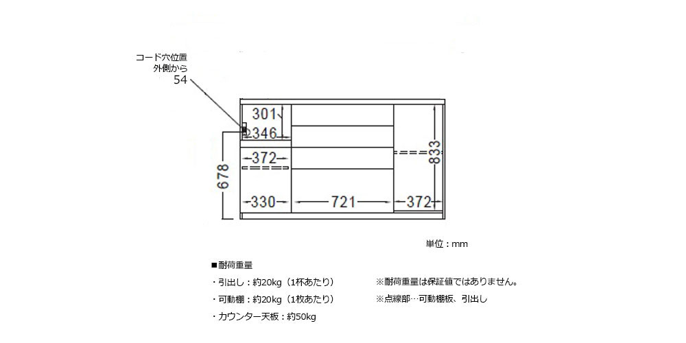 ※1ダストボックスを収納した場合は棚板が付けられなくなります。
