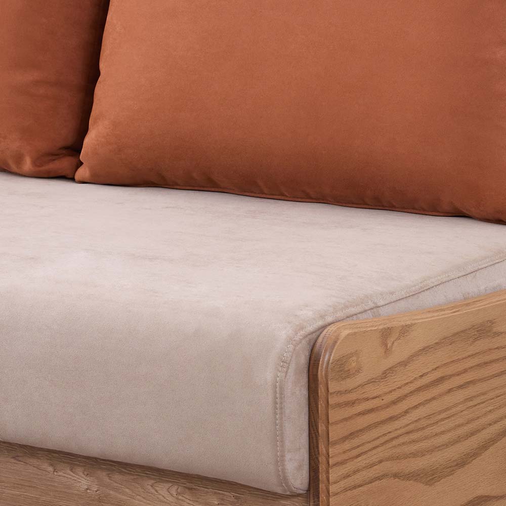 座面クッション部分には、マットレスの中材としても使われている「ライトウェーブ」採用しています。高い反発性と耐久性に優れた素材でヘタりにくく、ほどよい硬さで快適な座り心地・寝心地を実現しています。※画像は「フォース 200(布BR×木部BR)」のイメージです。