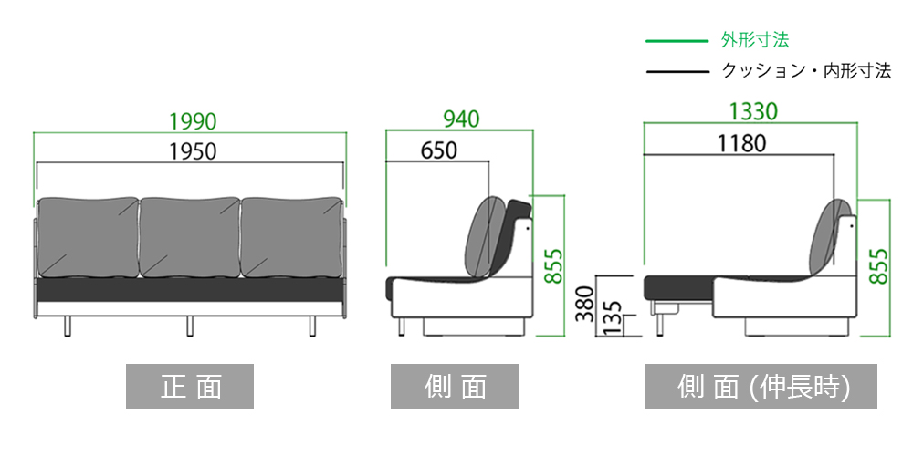 幅1990x奥行940/1330x高さ855