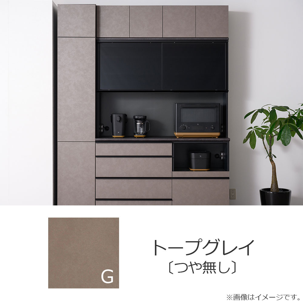 カウンター天板はシックな前板のどのカラーにも調和するセラミックグレイ色です。バックボードなどの本体はサンドブラック色で統一しています。