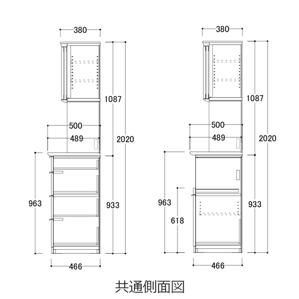幅1200タイプ寸法図・共通側面図(単位:mm)