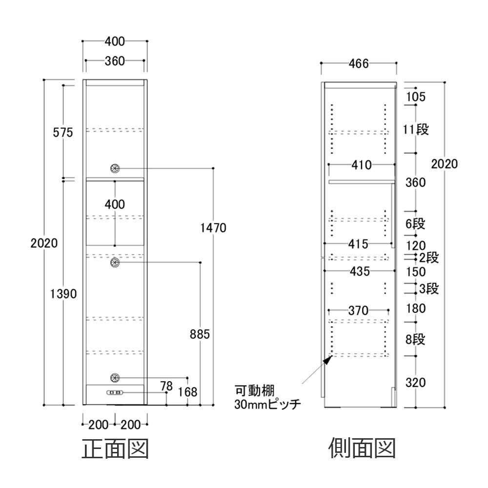 AYANO(綾野製作所)トールキャビネット「スピネル」幅40cm 全3色