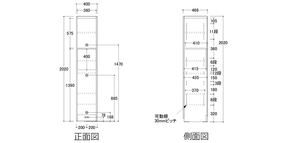 トールキャビネットのみの設置やトールキャビネットを2つ並べての設置はできません。必ずスピネルシリーズのキャビネットと連結が必要となります。