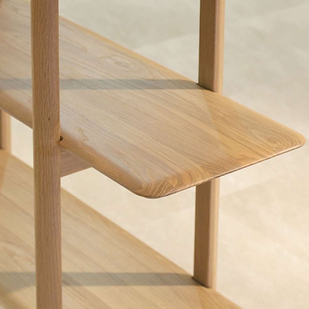 部屋中央の間仕切りとしても使えるシェルフです。すべてオーク無垢材を使用した質感高い仕上がりです。