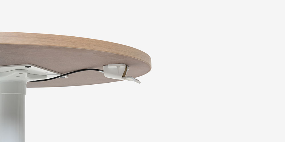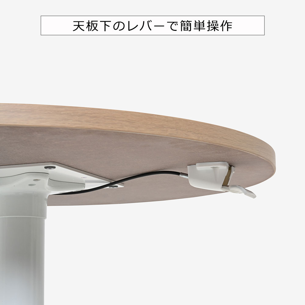 簡単なレバー操作のみで自由に高さが変えられる昇降式テーブルです。