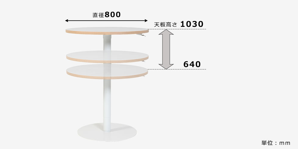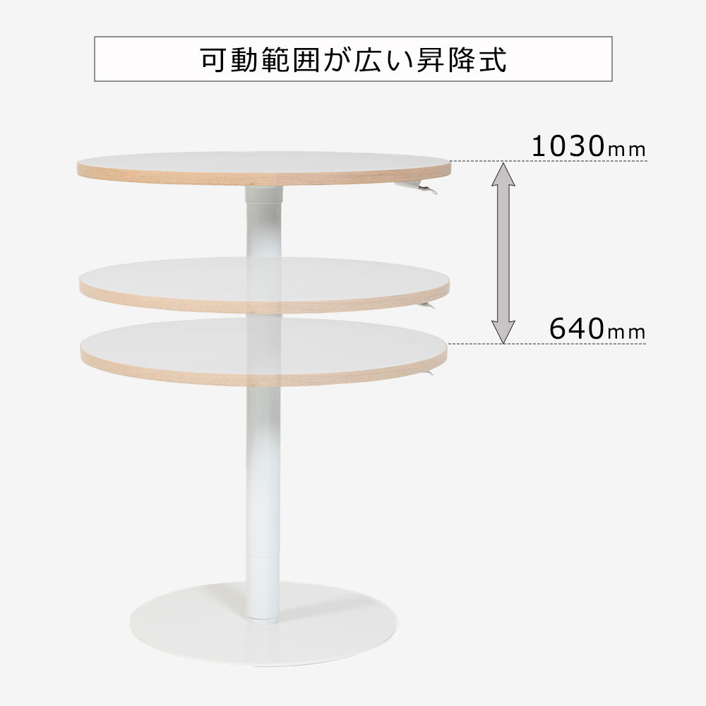 昇降式テーブル「OP17(オプティオ17)WH/WH」幅80cmマル 天板ホワイト色【受注生産品】