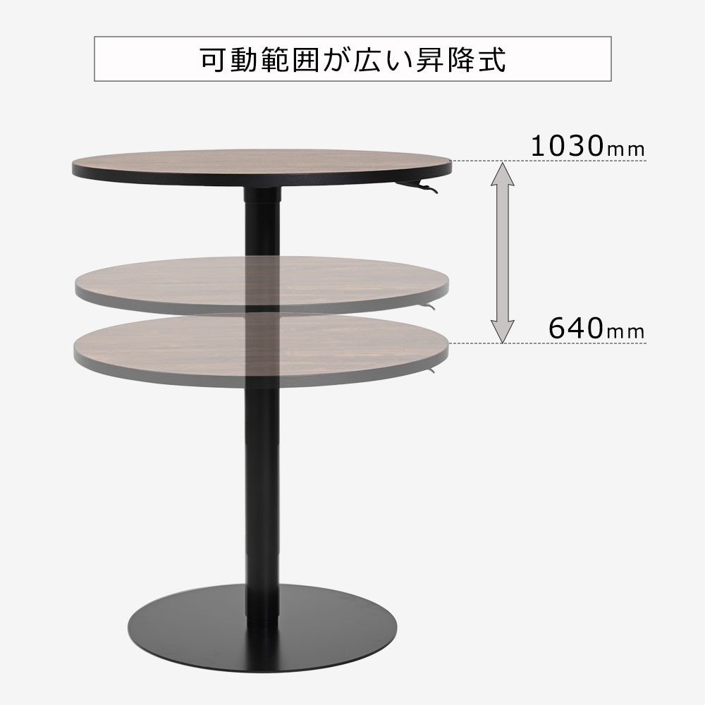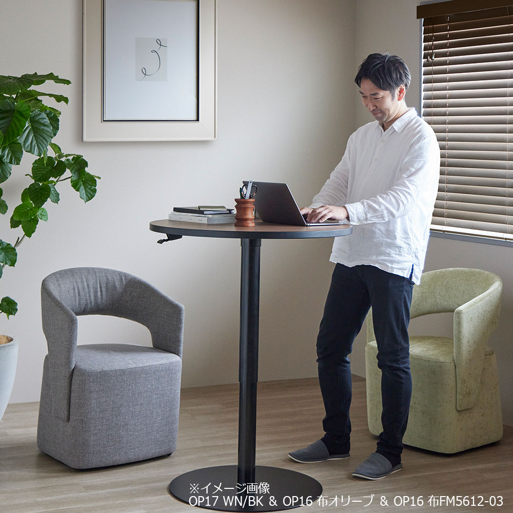 昇降式テーブル「OP17(オプティオ17)WN/BK」幅80cmマル 天板ウォールナット色【受注生産品】