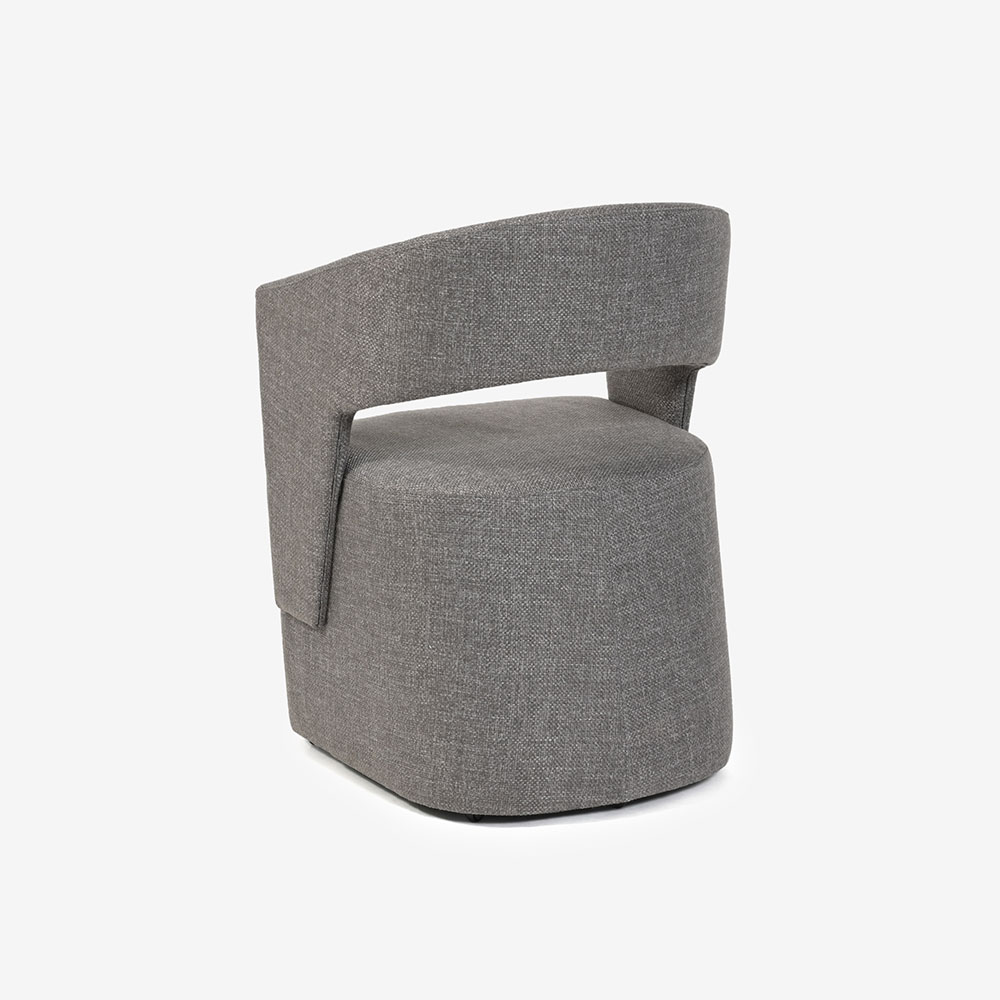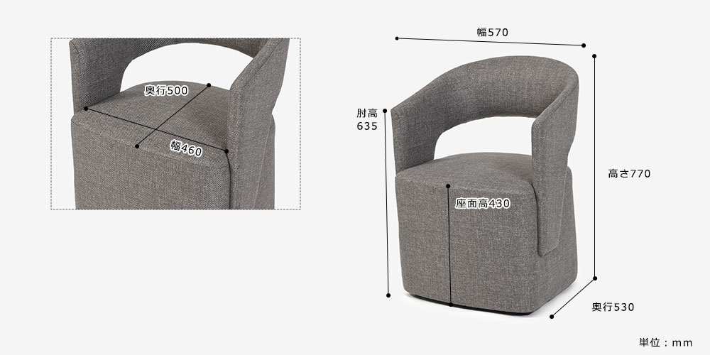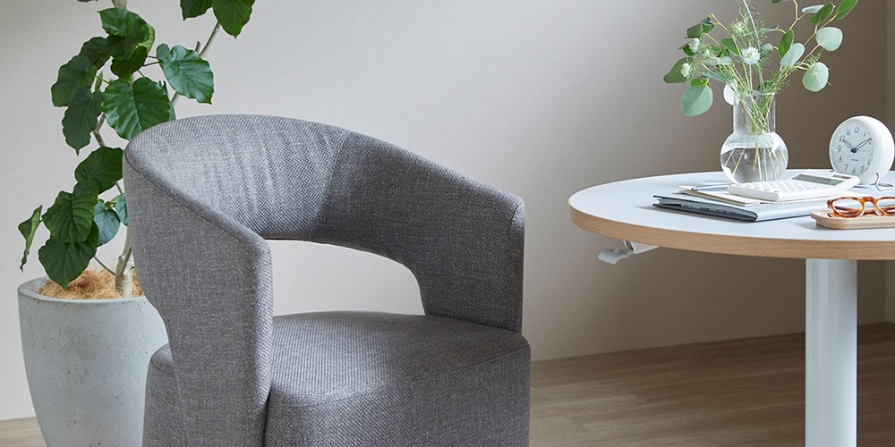 程よい弾力のクッションと滑らかな曲線で包み込まれる座り心地です。ゆったりと長時間お座りいただけるので、ラウンジやダイニングなど幅広いシーンでお使いいただけます。