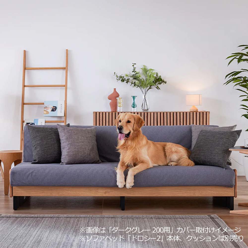 日々のお手入れを軽減してくれる、ソファベッド「ステイ」「ドロシー2」専用のカバーです。かぶせるだけで簡単に取付けできて、ソファベッド本体が汚れるのを防ぎます。さらに汚れや傷につよいペット対応の生地を使用しているため、気になる汚れなどのメンテナンスを気軽に行うことができて、ペットと一緒に過ごす時間を心おきなく楽しむことができます。