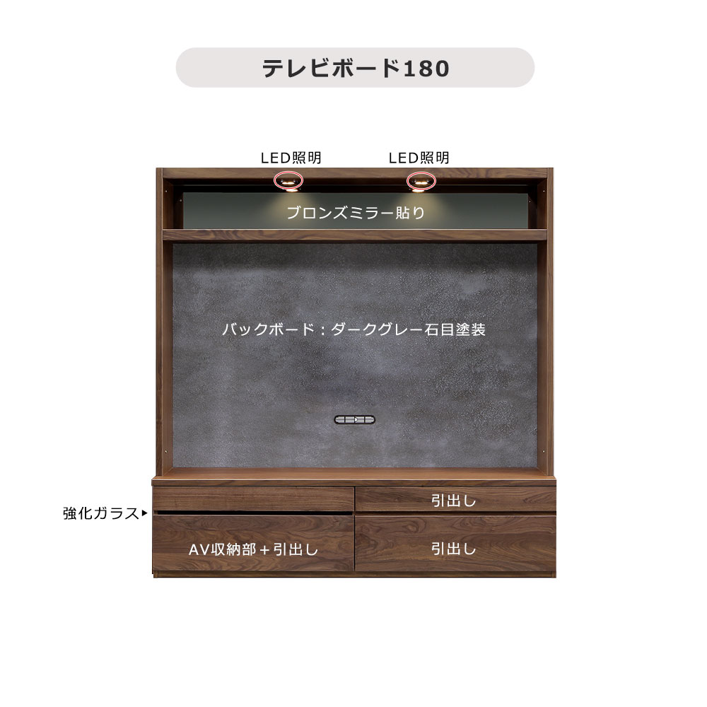 LEDライト付きで「飾る」を美しく演出するテレビボード【幅180cm】