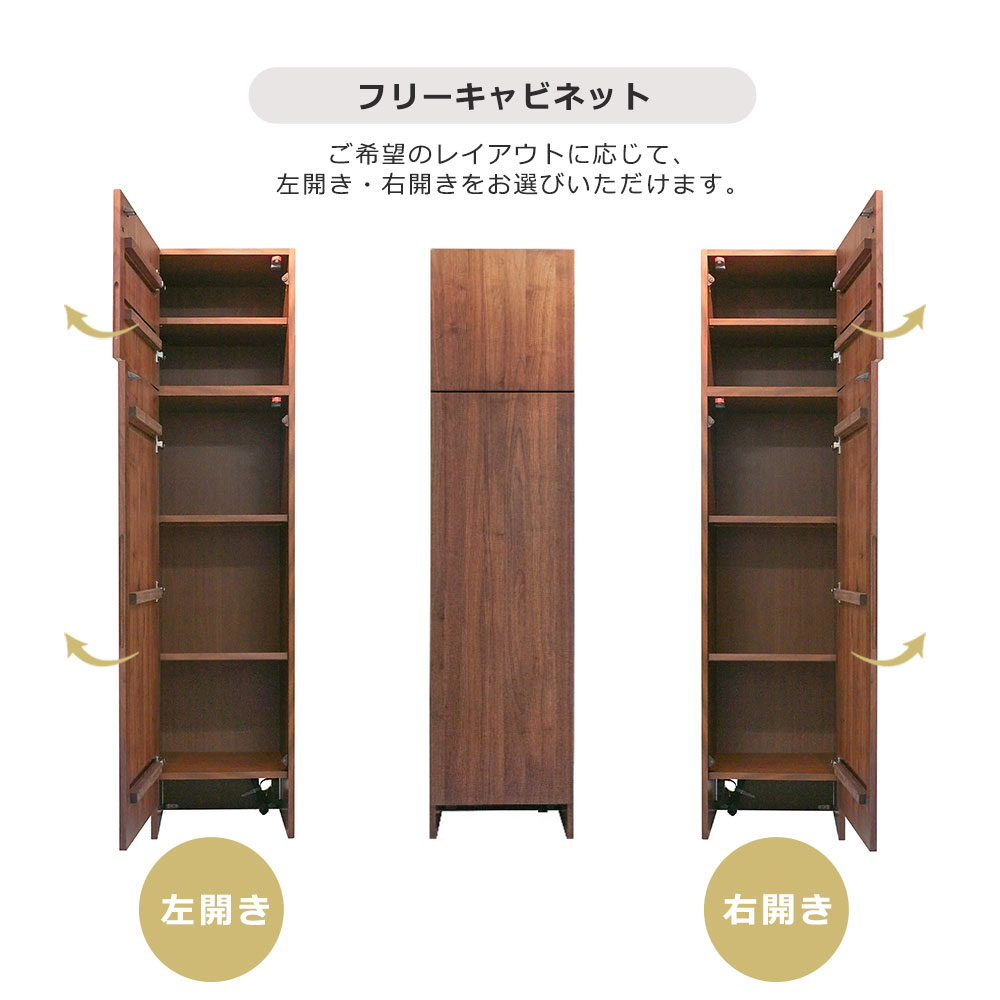 フリーキャビネットは、ご希望のレイアウトに応じて「向かって左開き」か「向かって右開き」かをお選びいただけます。