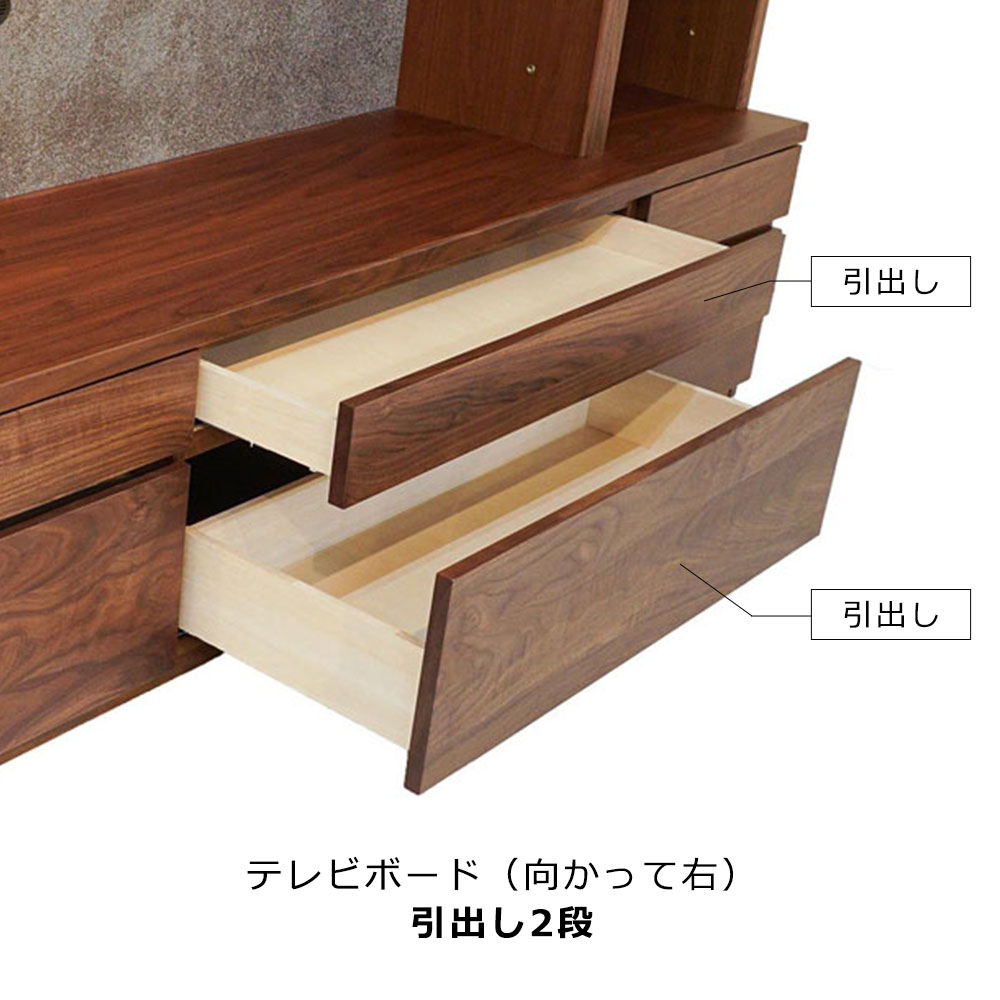高級なウォールナットの無垢材を贅沢に使用したミドルタイプのテレビボード。