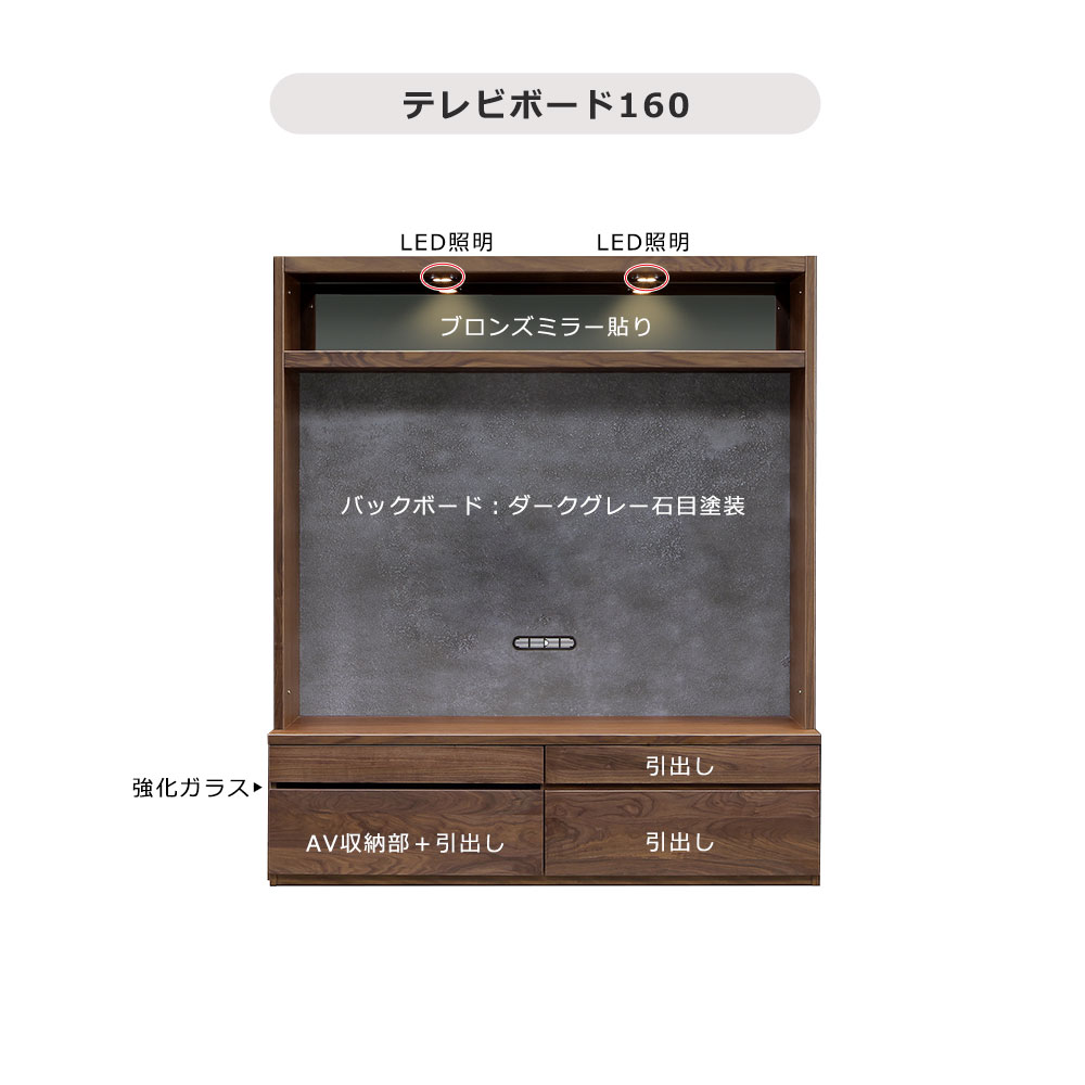 LEDライト付きで「飾る」を美しく演出するテレビボード【幅160cm】