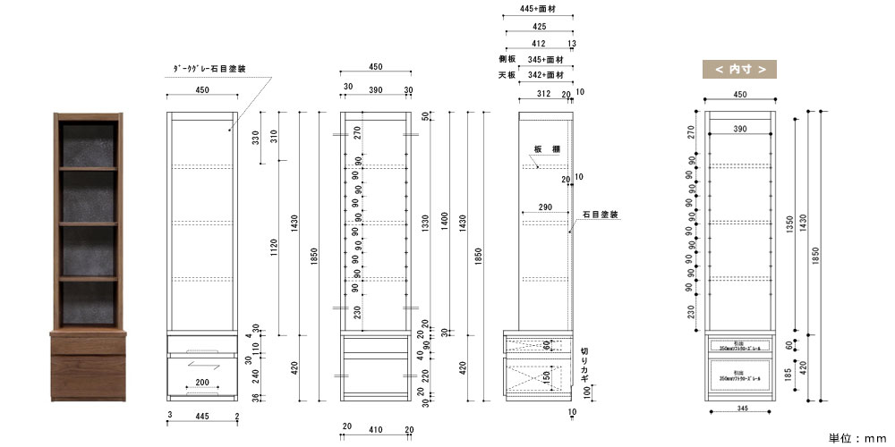 | フリーキャビネット | 幅450x奥行365x高さ1850 |