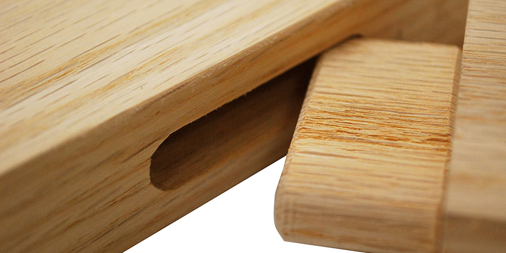 ホゾの表面にギザギザを作ることによって糊がホゾ全体に行き渡り、組み立て後に圧縮されたホゾが糊の水分を吸収して膨らむことで、ホゾ穴とホゾが隙間なく接合し、確かな接合強度をもたらします。※画像はイメージです。
