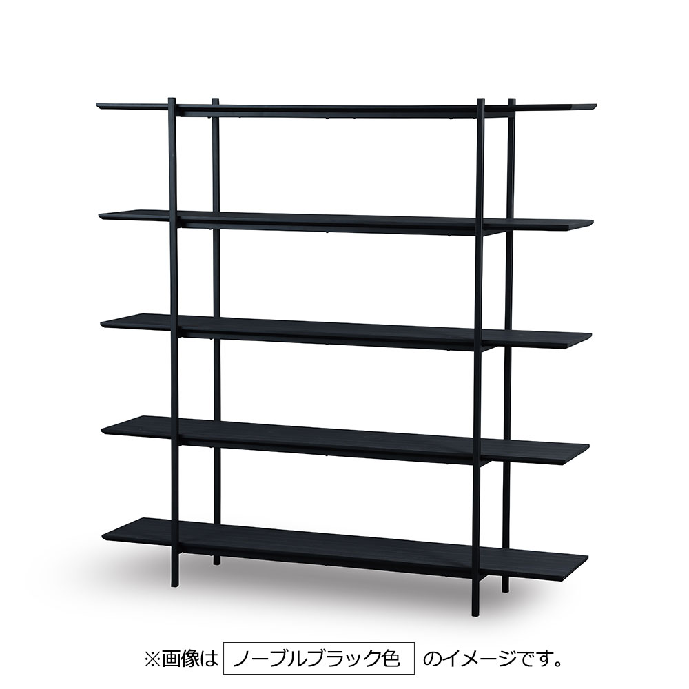 棚板はフラットで仕切りが無く、雑誌やオブジェなど自由なレイアウトが可能です。フレームより長く伸びた棚板の縁はテーパー形状になっており洗練された印象。圧迫感がなくお部屋を広く見せてくれます。※画像はノーブルブラック色のイメージです。