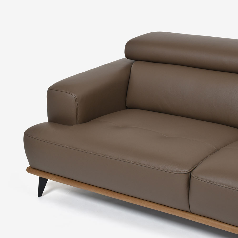 ブレシアは無段階の可動式ヘッドレストを搭載し、ヘッドレストの角度調整が可能です。お好みの位置にヘッドレストを立てることで頭までサポートができ、ゆったりとおくつろぎいただけます。