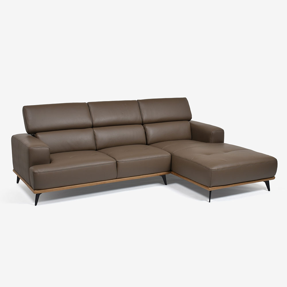 カウチソファ 向って左カウチ「ブレシア」幅240cm 半革#M-07 トープ色