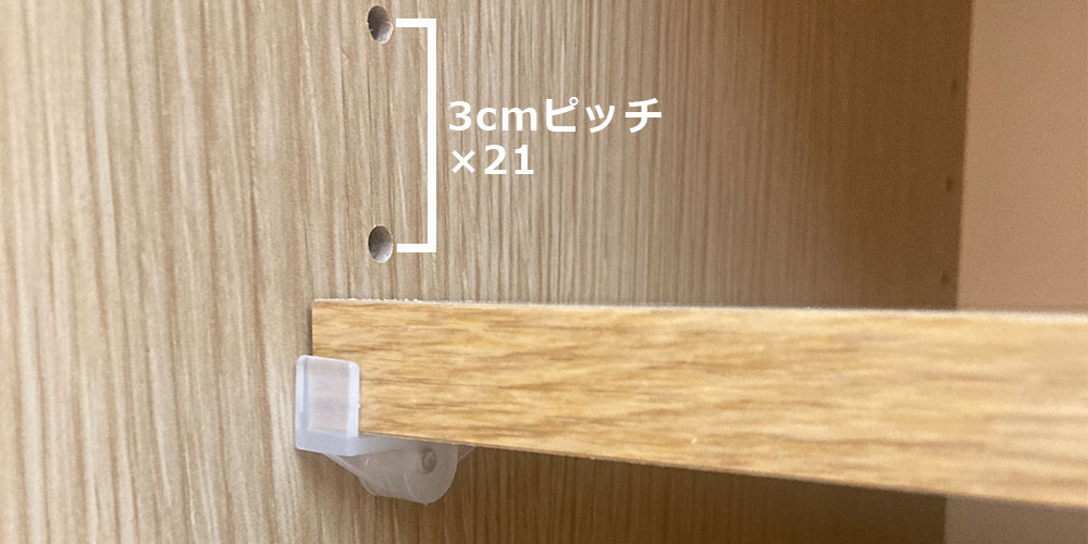 棚板は収納する靴や物に合わせて3cmピッチ21段階で調節可能です。