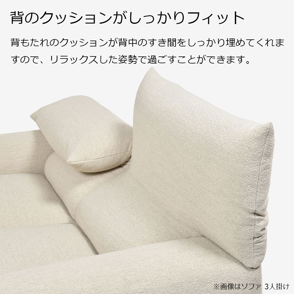 背もたれのクッションが腰の裏の隙間を埋め、ゆったりと背中を預けることができます。※画像はソファ 3人掛けです。