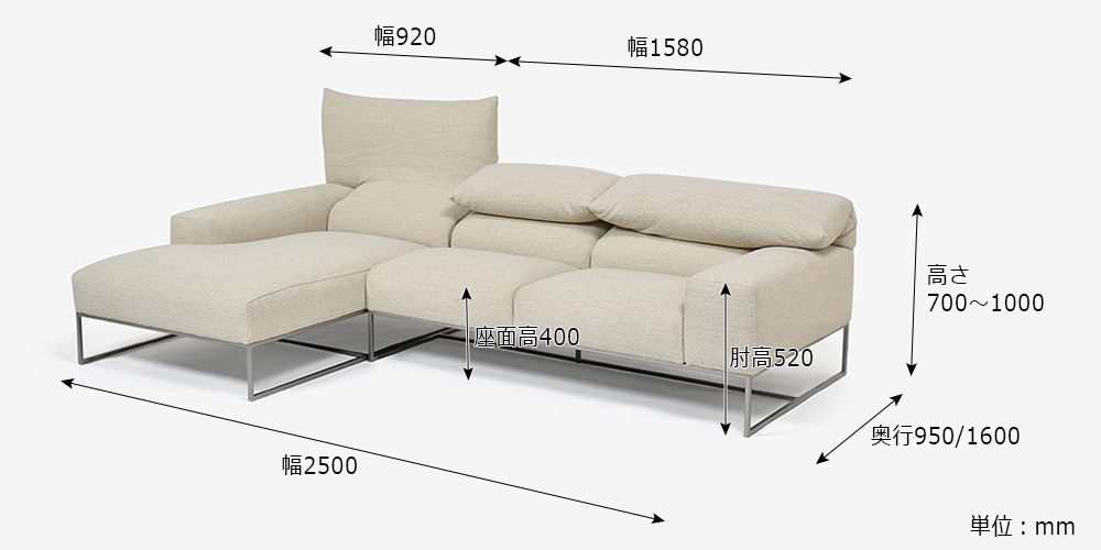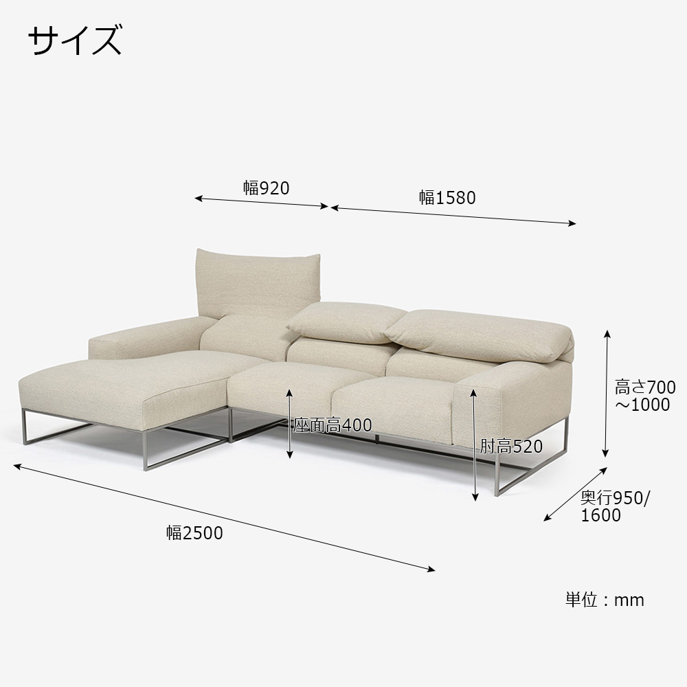 特徴的な丸みのあるデザインの背もたれを伸ばすことでハイバックにできる機能的なソファです。 座面には高密度ウレタンとフェザーを使用し、身体にやさしくフィットする座り心地です。家具工場が母体のブランドだからこそ、充実した自社設備を用いた高品質な構造が魅力です。