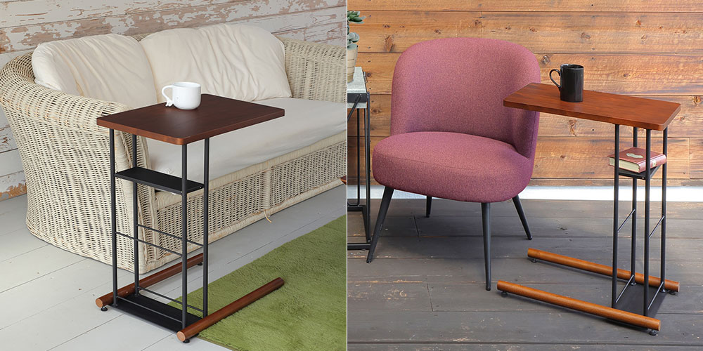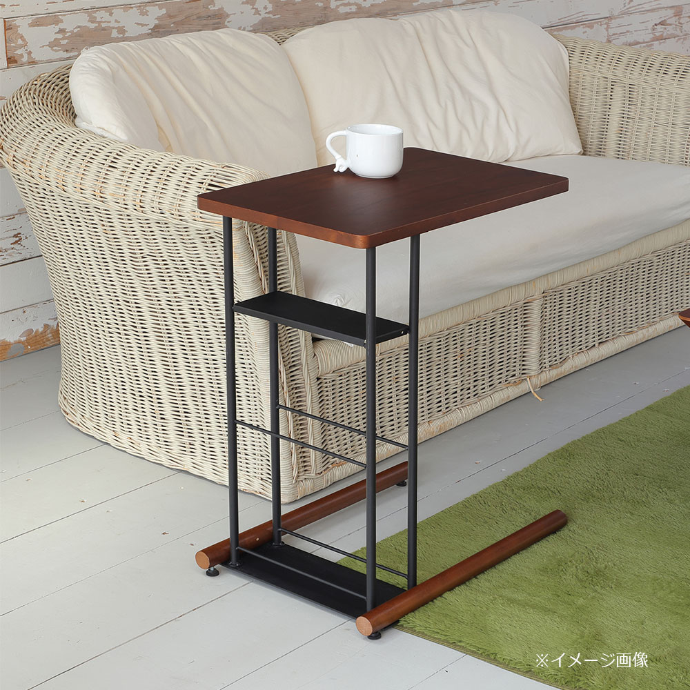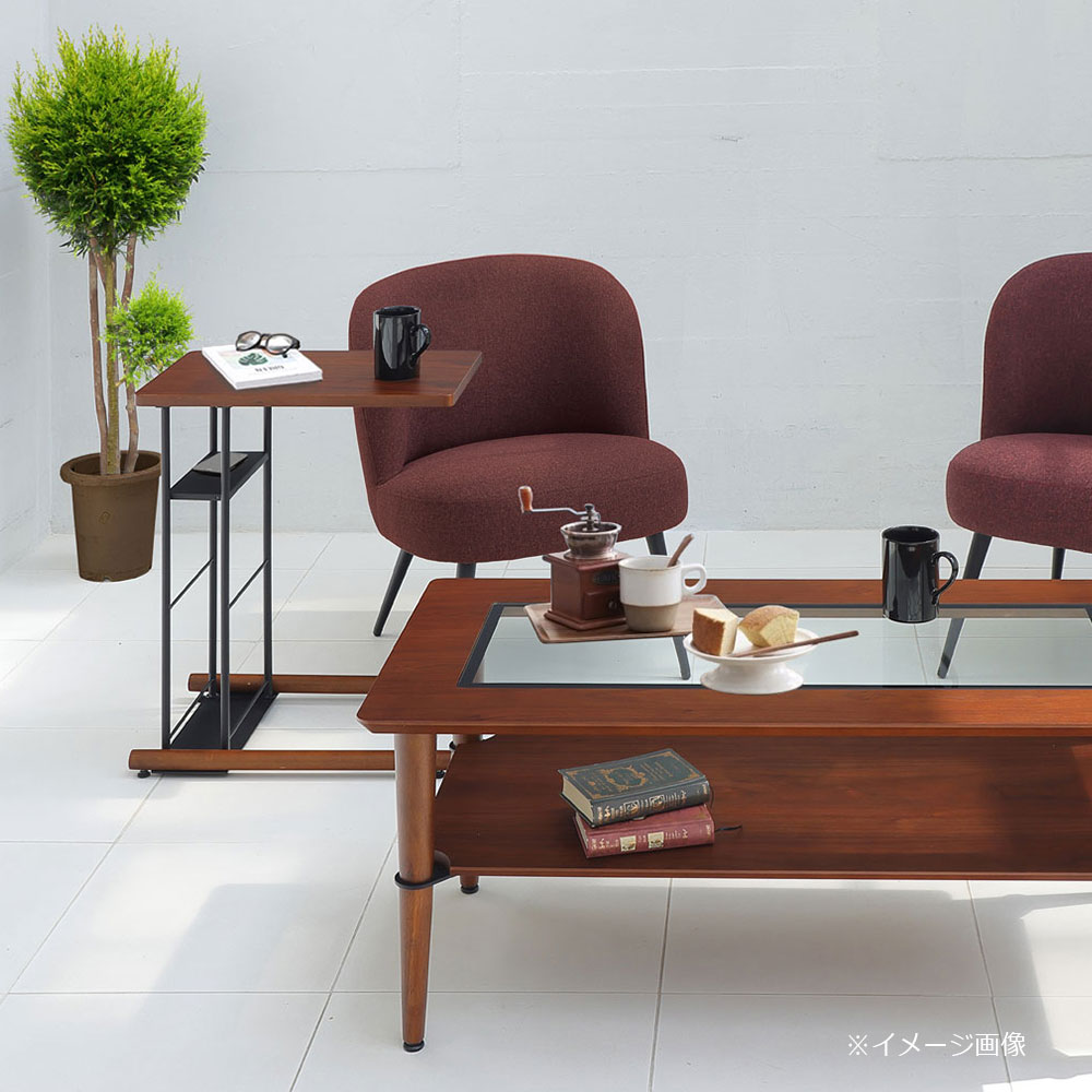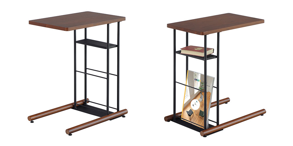 ウォールナット突板の天板とブラックフレームの組み合わせがモダンな印象のサイドテーブルです。棚下のスペースはブックスタンドとしても使用できます。※天然木を使用している為、木目や色味は一点ごとに異なります。