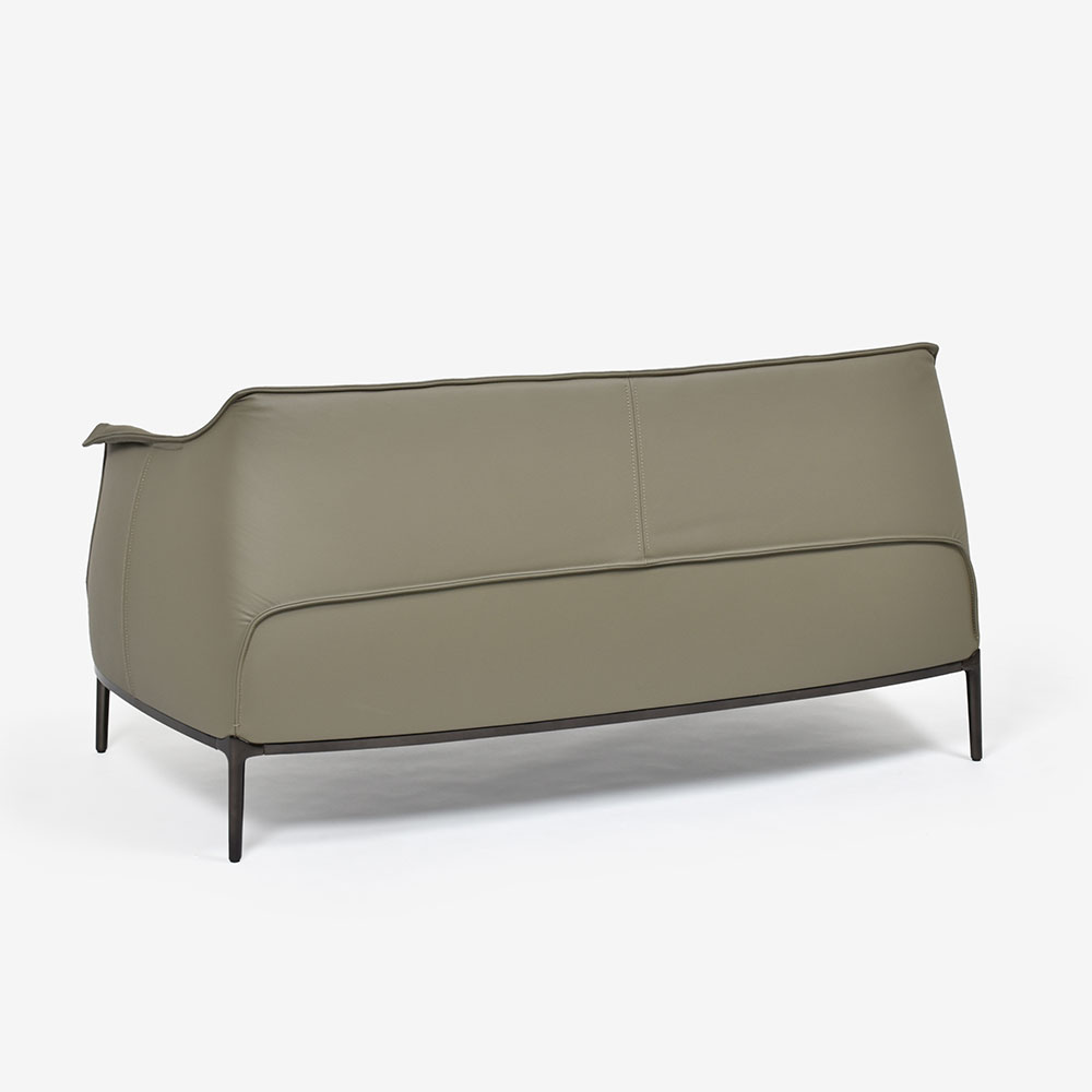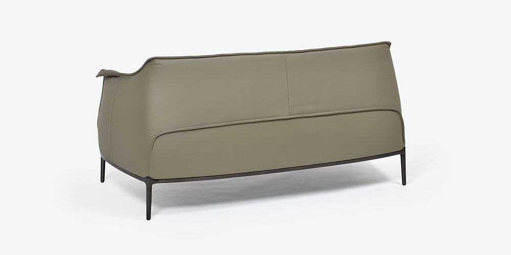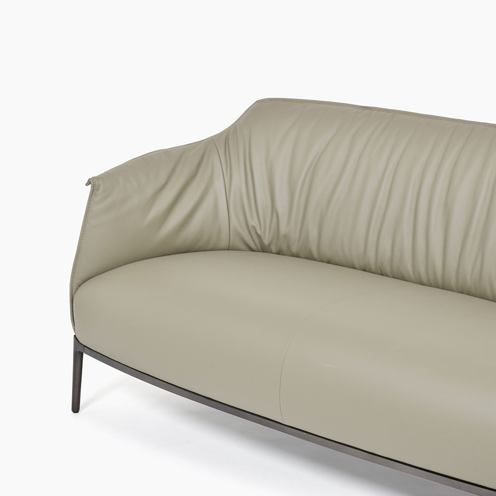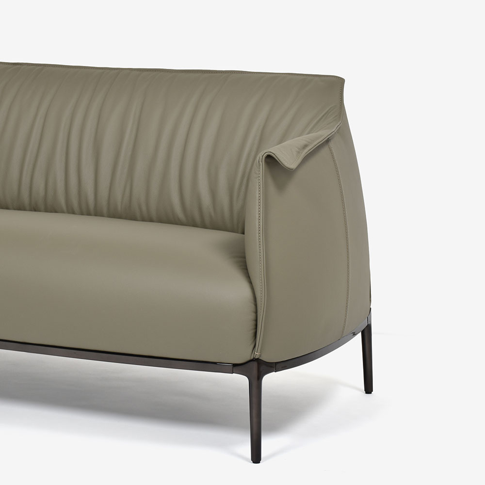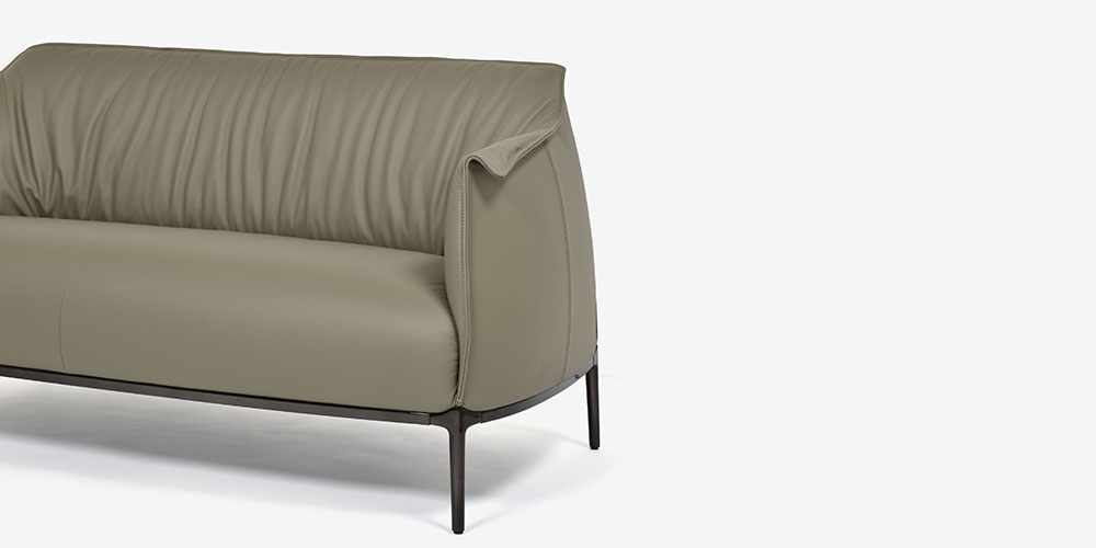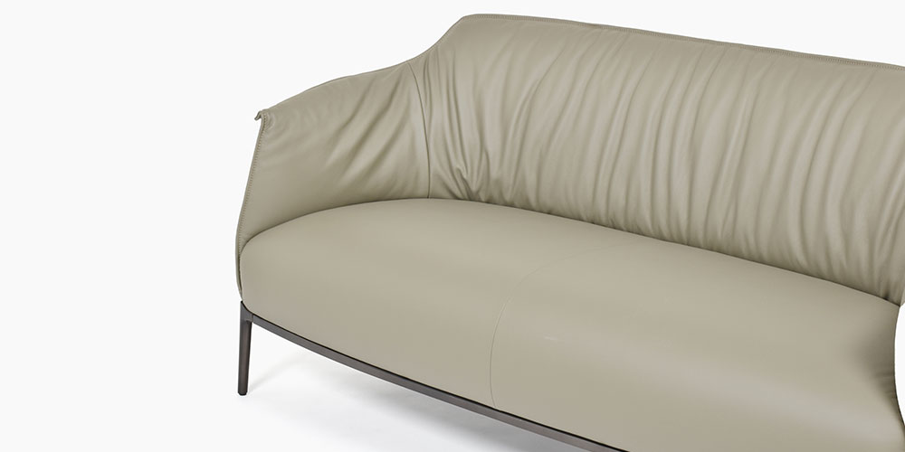 背もたれのレザーは自然な縦プリーツを生み出すように張られ、心地よい動きを演出します。