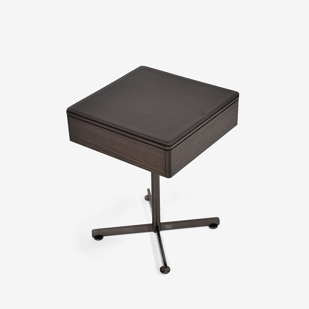 PoltronaFrau(ポルトローナ・フラウ)ナイトテーブル「ボブ ウィズドロワー」 40cm角 アッシュ材 レザーパッド付